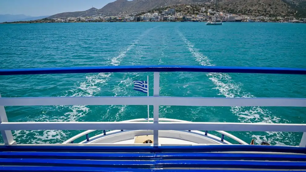 After the visit to Spinalonga, the boat returns to the harbor of Elounda.